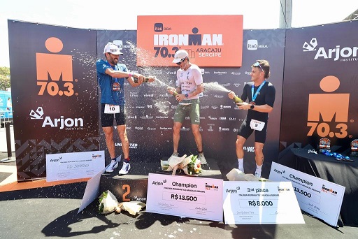 Deu Brasil na última etapa da temporada do Circuito Itaú BBA IRONMAN 70.3. A manhã deste domingo, 30, marcou momentos de redenção e celebração para Fernando Toldi e Vittória Lopes, que finalmente transformaram o “quase” em vitória ao triunfarem no Itaú BBA IRONMAN 70.3 Aracaju-Sergipe. Após ficarem muito próximo do topo do pódio em provas anteriores, os dois atletas encontraram na capital sergipana o palco ideal para atuações de altíssimo nível — mesmo sob um calor intenso que elevou o grau de dificuldade.