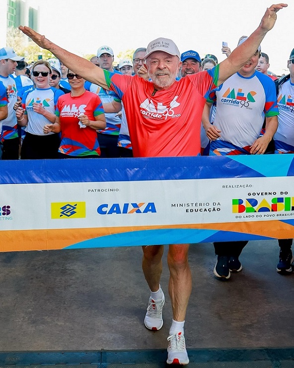Na largada, o petista, que usava o boné com a mensagem que o ‘Brasil é dos brasileiros’, chegou a dar uma ‘corridinha’, sendo aclamado pelos presentes. Aos 79 anos, Lula vem tentando mostrar jovialidade. Essa não é a primeira vez que ele é visto dando essas ‘corridinhas’ em público.