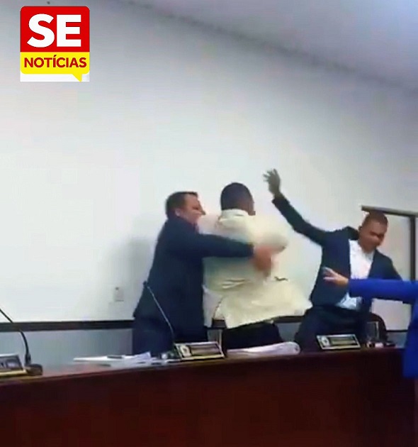 Nesse momento, Reinaldo foi até o presidente e acabou desferindo empurrões contra ele. Quando tudo parecia resolvido, o presidente retornou ao plenário com o filho no braço e foi amplamente agredido verbalmente pelo vereador Reinaldo de Celso.